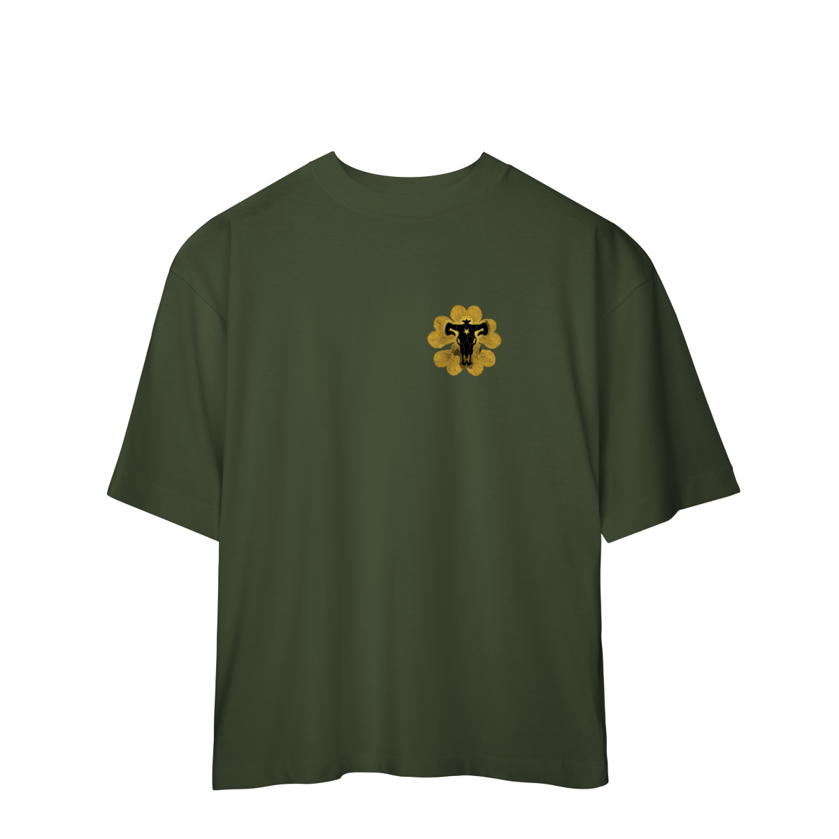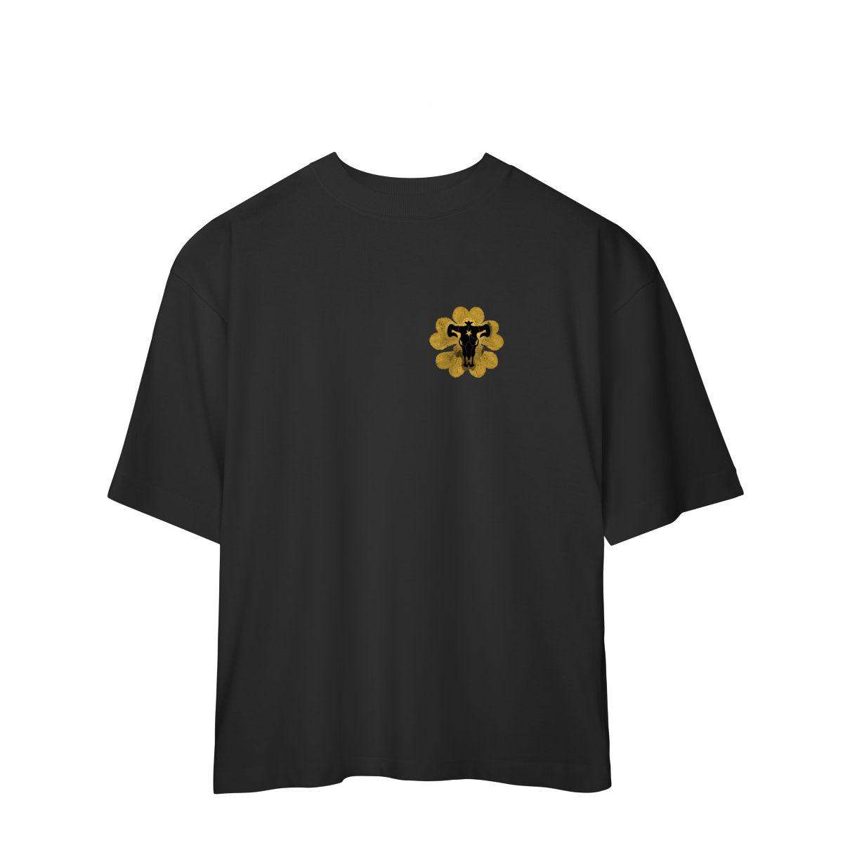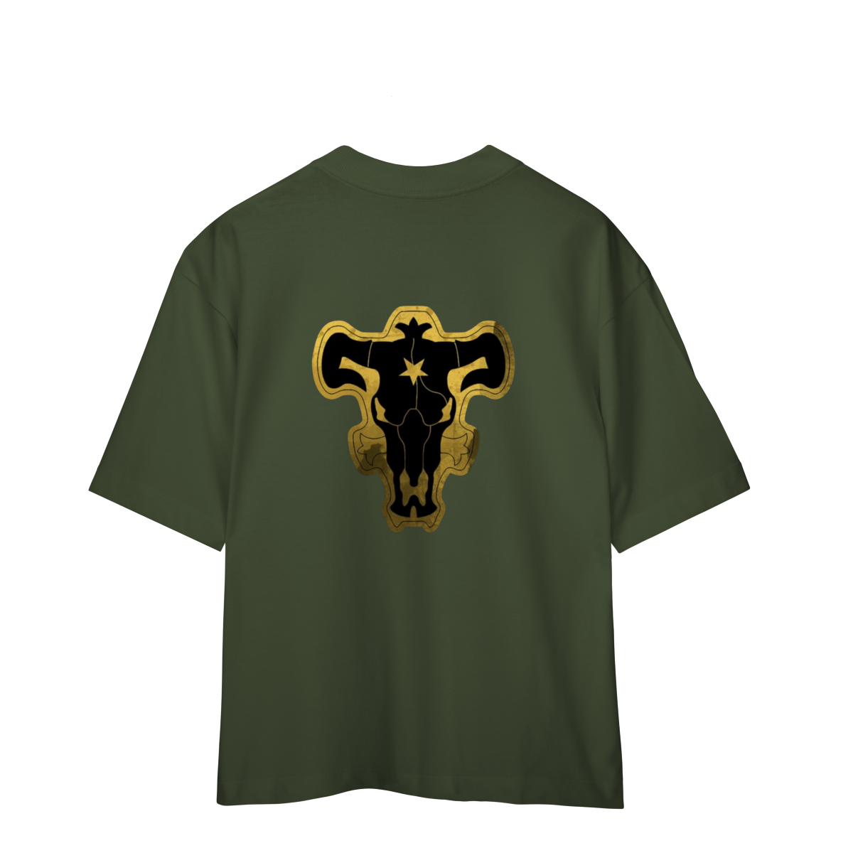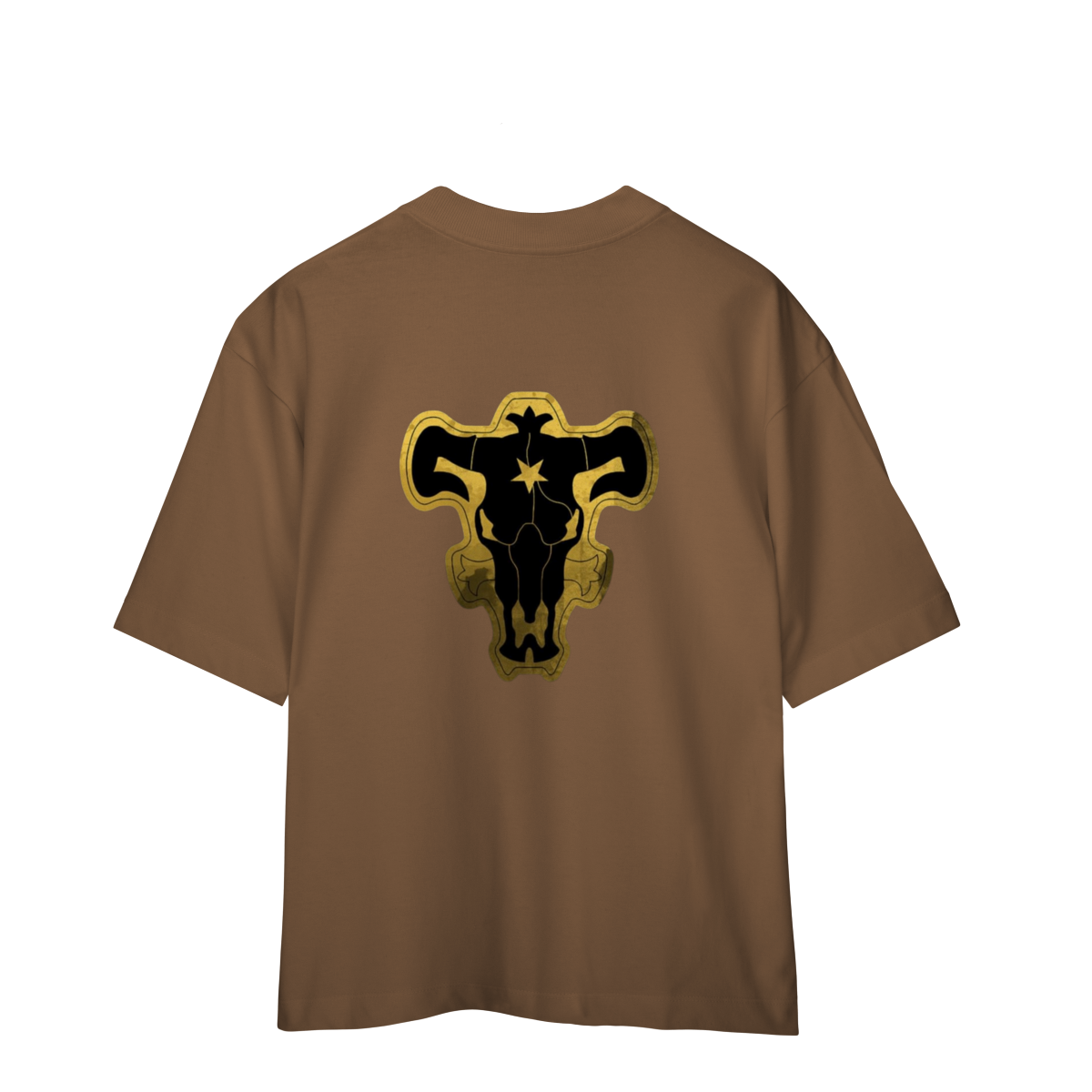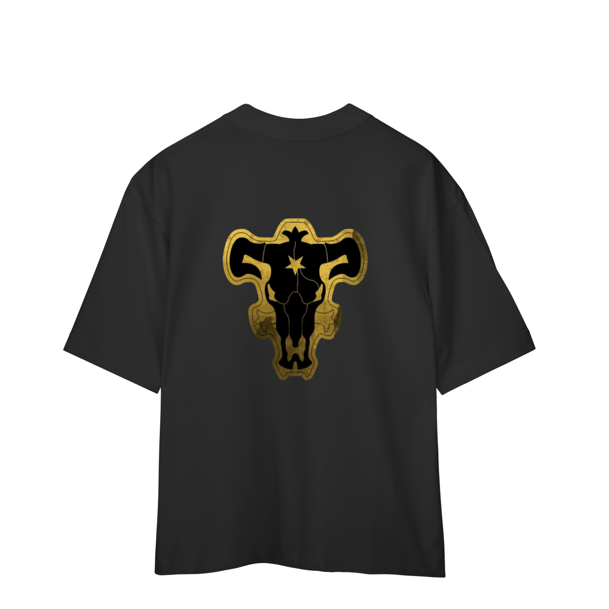 Mostre seu estilo e personalidade com a Camiseta Oversized Touros Negros, inspirada no icônico símbolo do esquadrão mais ousado do universo de Black Clover.